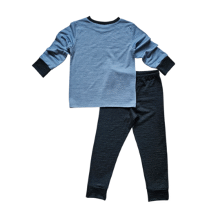 Universalus, praktiškas ir labai patogus komplektukas mažyliui. Tai minkštas ir švelnus 100%, vidutinio storumo 160g/m. merino vilnos trikotažas.