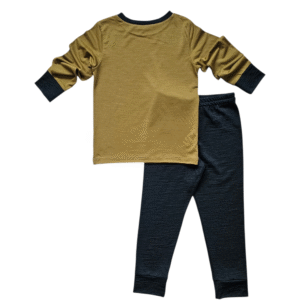 Universalus, praktiškas ir labai patogus komplektukas mažyliui. Tai minkštas ir švelnus ( palaidinė ) 90% merino vilna ir 10% šilko. Kelnytės 100% merino vilnos vidutinio storumo 170g/m. trikotažas.