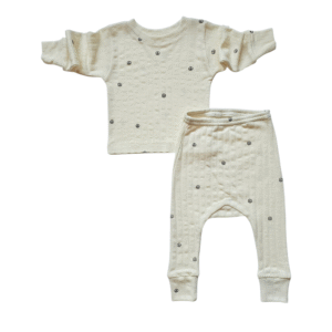 Universalus, praktiškas ir labai patogus komplektukas mažyliui. Tai minkštas ir švelnus 100%, vidutinio storumo 170g/m. merino vilnos trikotažas.
