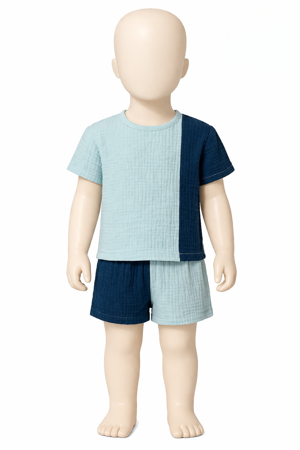Lengvumas, kurį pajusi vos palietus – šis iš dviejų spalvų ( mėtinės ir mėlynos ) suderintas komplektukas pasiūtas iš 100% garintos medvilnės muslino. Tai – paprasto, laisvo kirpimo rūbeliai, kurie nevaržo judesių ir leidžia odai kvėpuoti net ir pačiomis karščiausiomis vasaros dienomis.