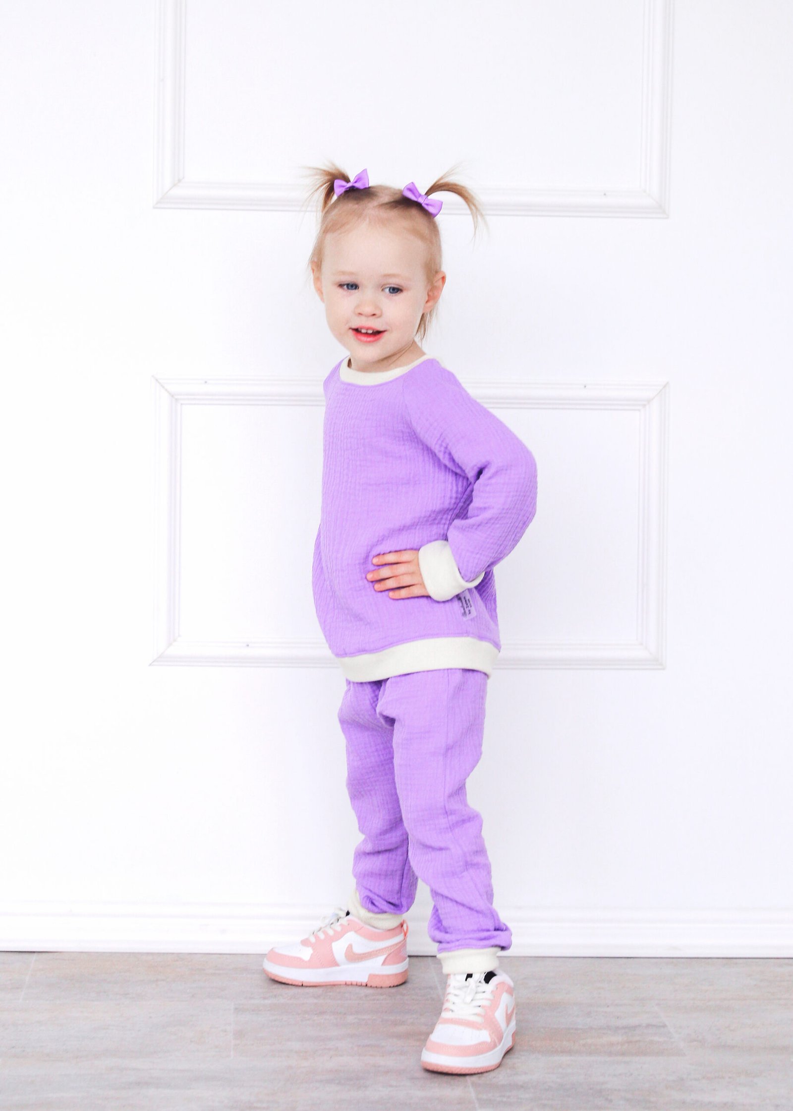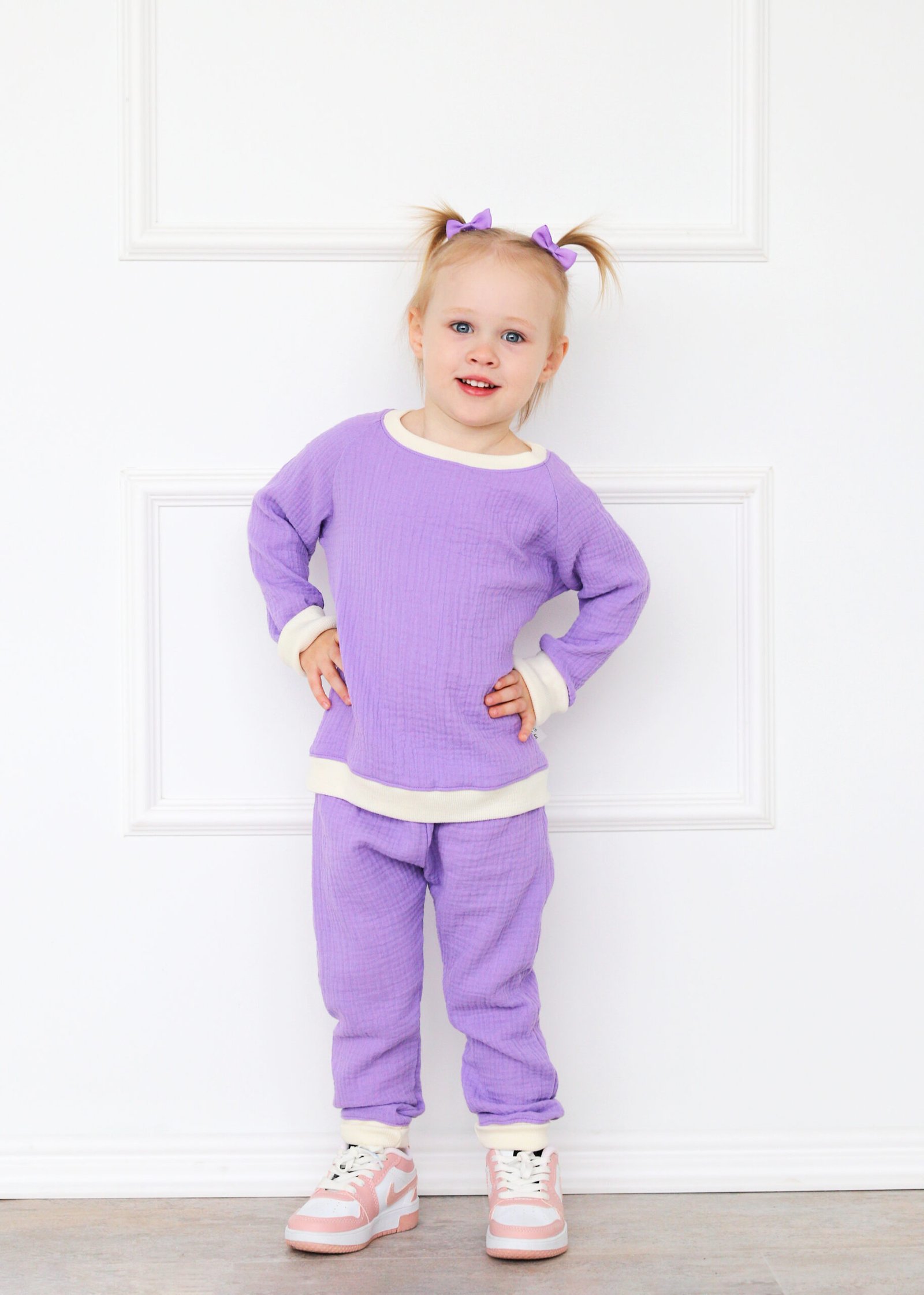 Lengvumas, švelnumas ir natūralumas viename – šis alyvinės spalvos muslino medvilnės komplektukas taps mylimiausiu mažylio garderobo pasirinkimu šiltuoju metų laiku.