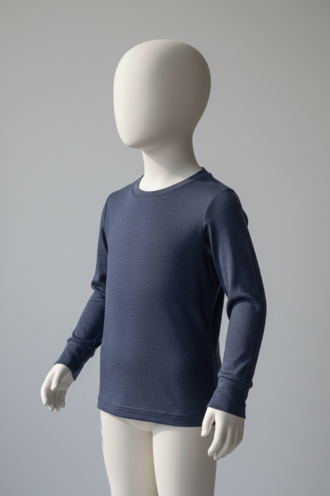 Tamsiai mėlynos spalvos. Ilgomis rankovėmis, kad būtų šilta, bet lengva – puikiai tinka visiems metų laikams.
