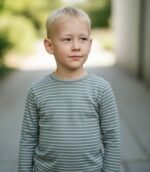 Dryžuota, mėtos ir baltos spalvos. Ilgomis rankovėmis, kad būtų šilta, bet lengva – puikiai tinka visiems metų laikams.