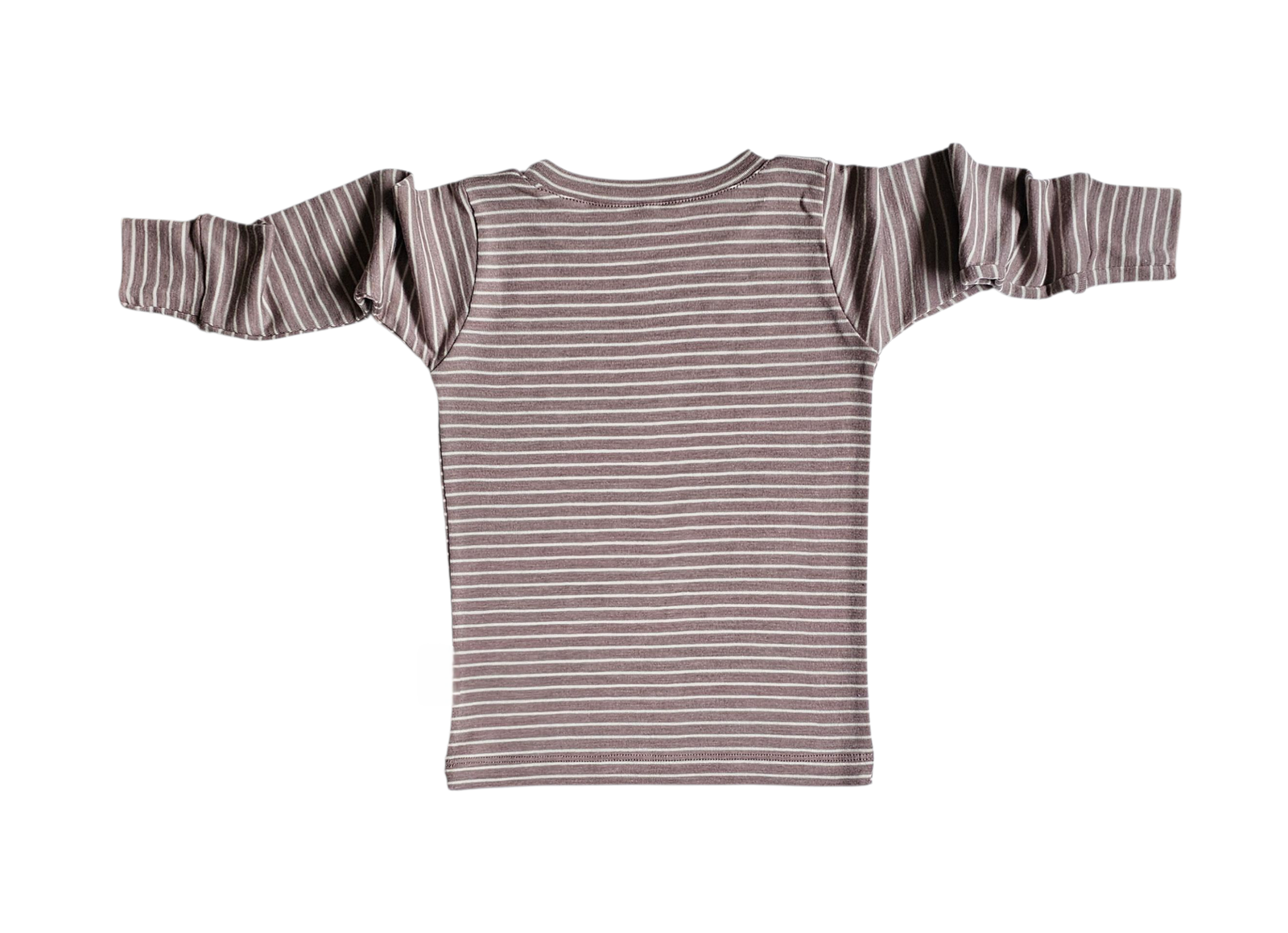 Dryžuota, kakavos ir baltos spalvos. Ilgomis rankovėmis, kad būtų šilta, bet lengva – puikiai tinka visiems metų laikams.