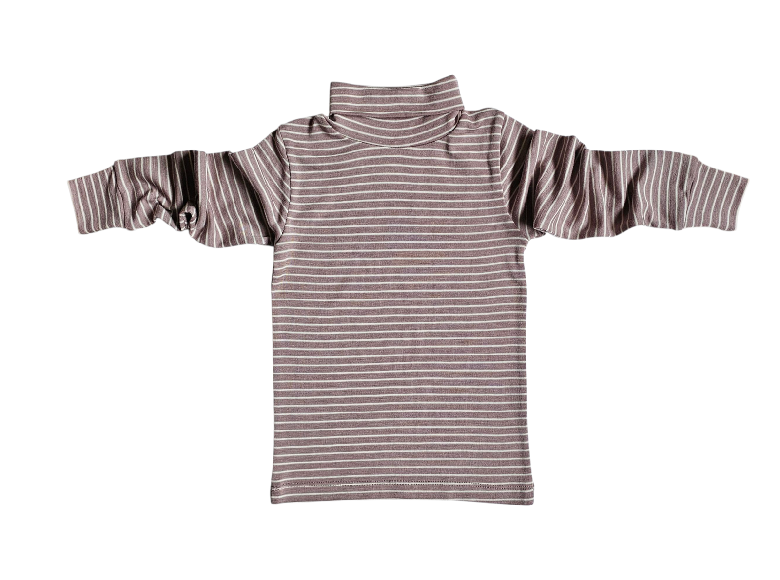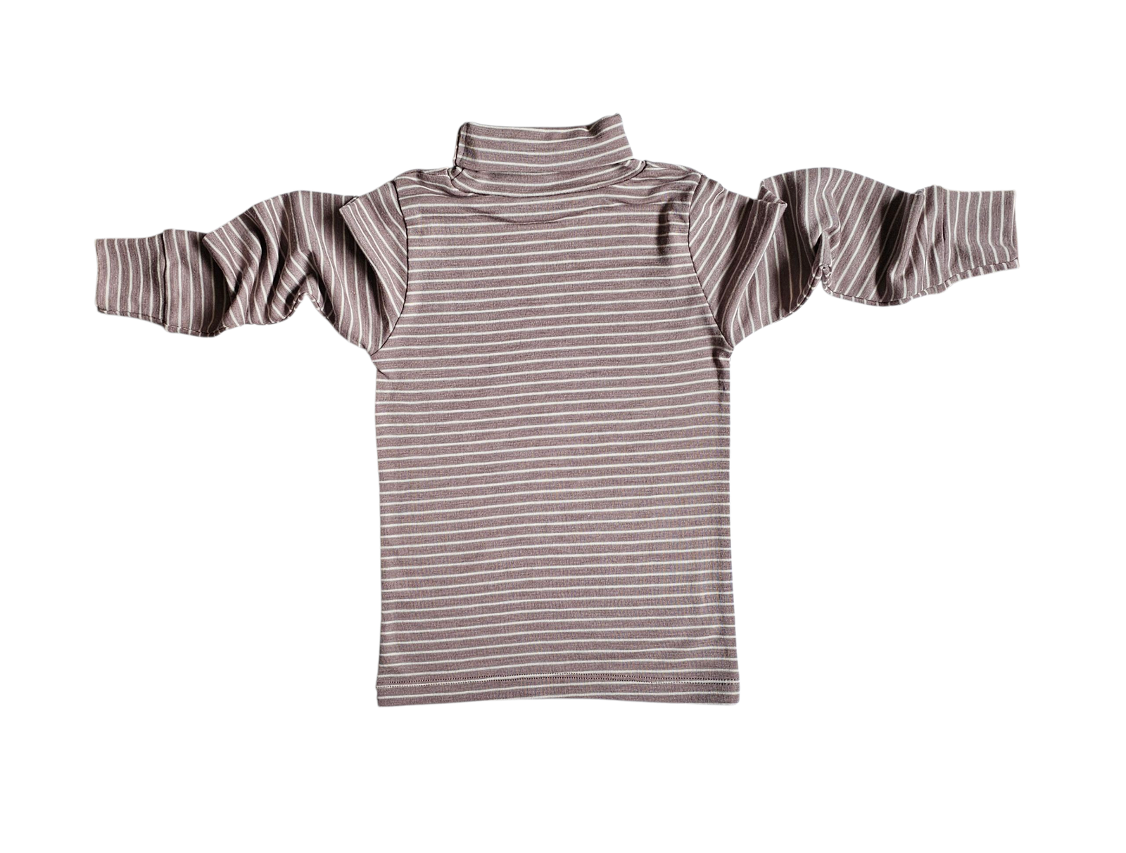 Minkštas, aukštos kokybės merino vilnos golfas – puikus pasirinkimas vėsesniems orams. Šis drabužėlis šildo, tačiau leidžia odai kvėpuoti, tad vaikas neperkais net ir būdamas uždarose patalpose. Dryžuotas, kakavos ir baltos spalvos.