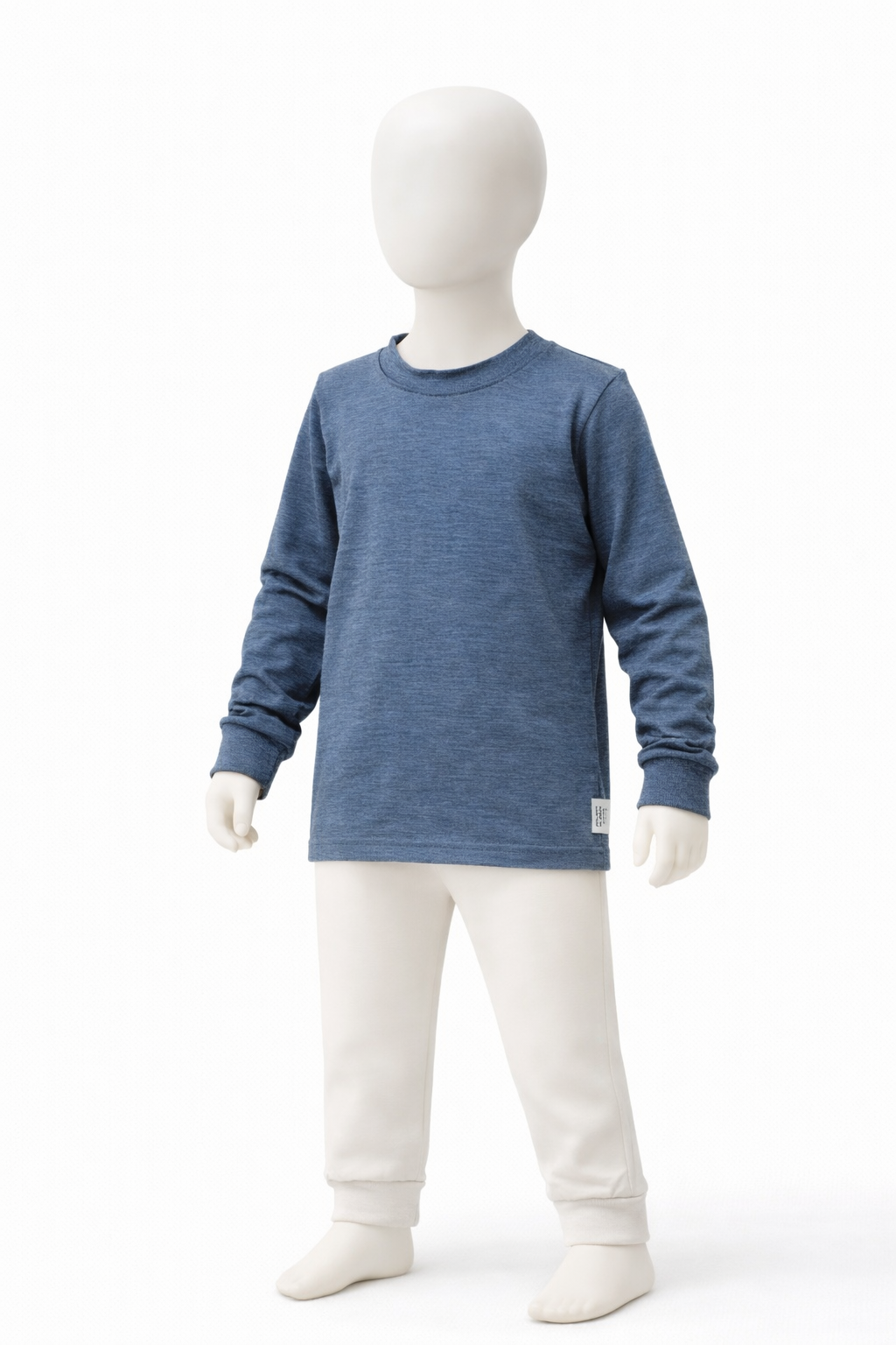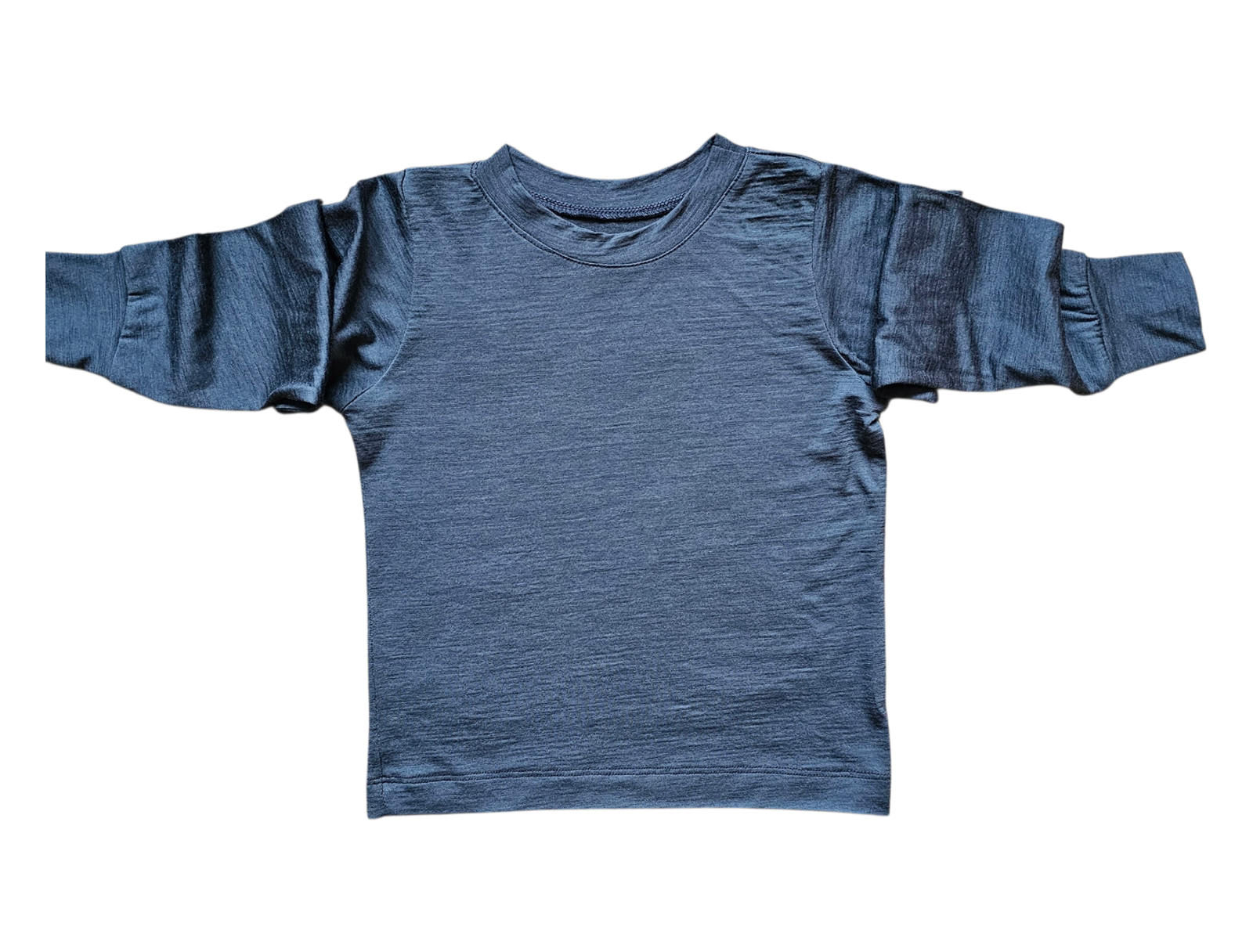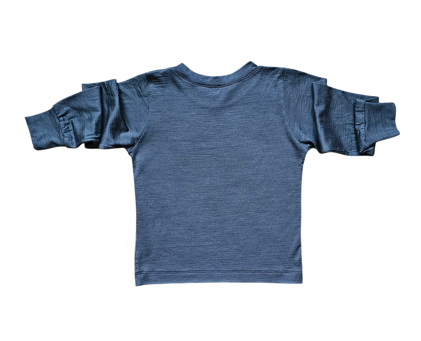 Mėlynai pilkos spalvos. Ilgomis rankovėmis, kad būtų šilta, bet lengva – puikiai tinka visiems metų laikams.