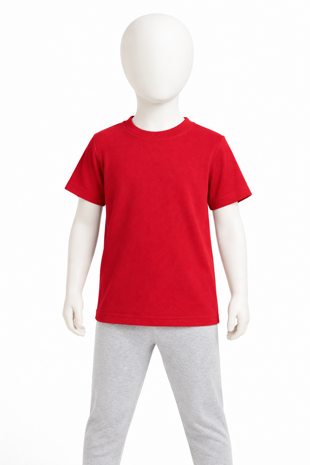 Trumpomis rankovėmis, lengva, koriuko tekstūros audinys ( raudonos spalvos ) – puikiai tinka visiems metų laikams.