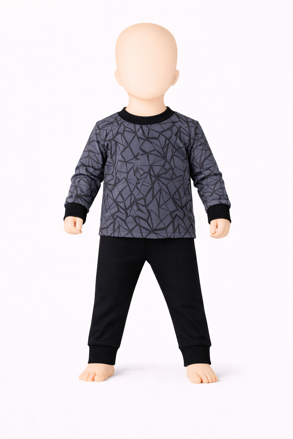Universalus, praktiškas ir labai patogus komplektukas mažyliui. Tai 50% merino vilnos ir 50% medvilnes vidutinio storumo 180g/m. trikotažas.