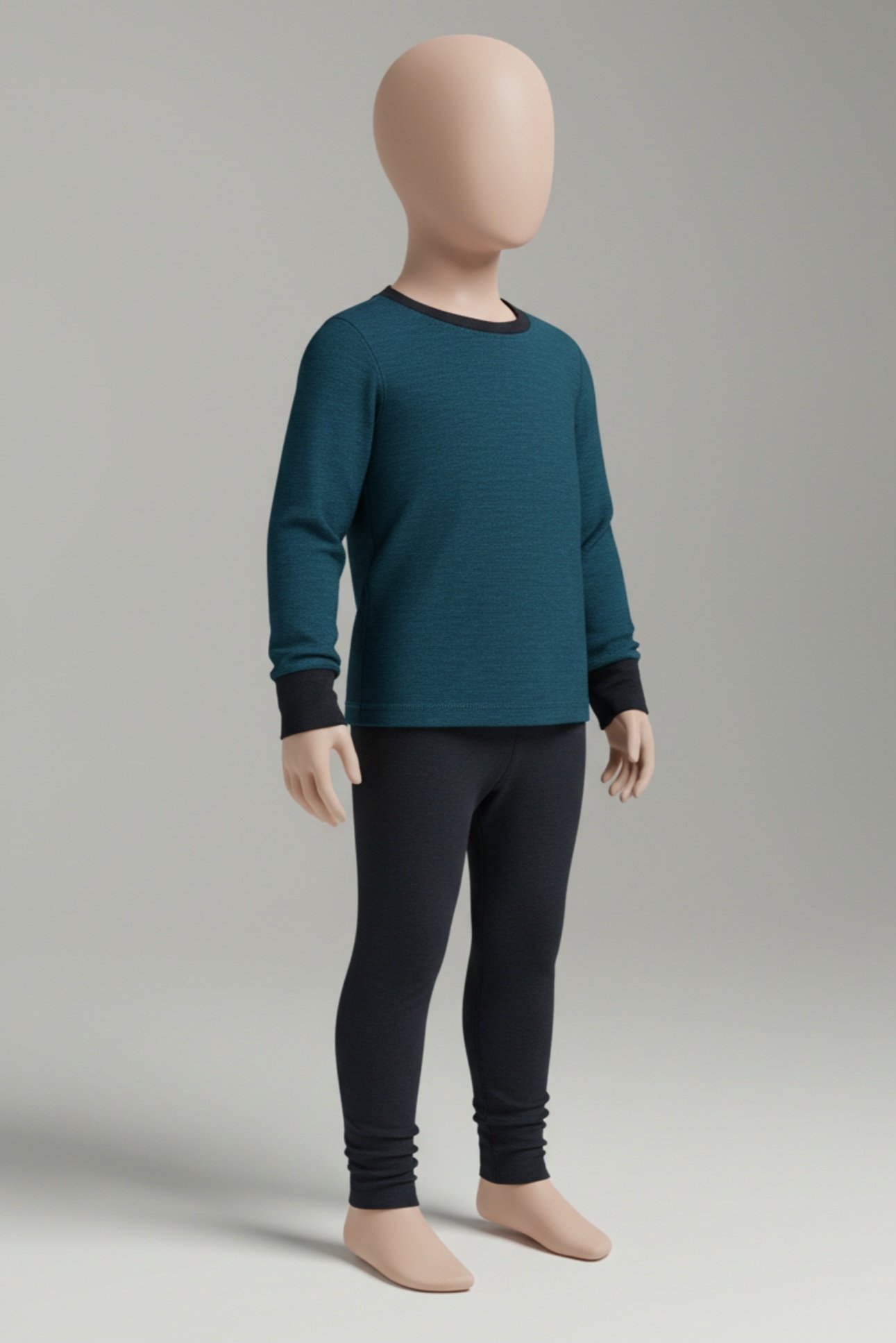 Universalus, praktiškas ir labai patogus komplektukas mažyliui. Tai 100% vidutinio storumo 170g/m. merino vilnos trikotažas.