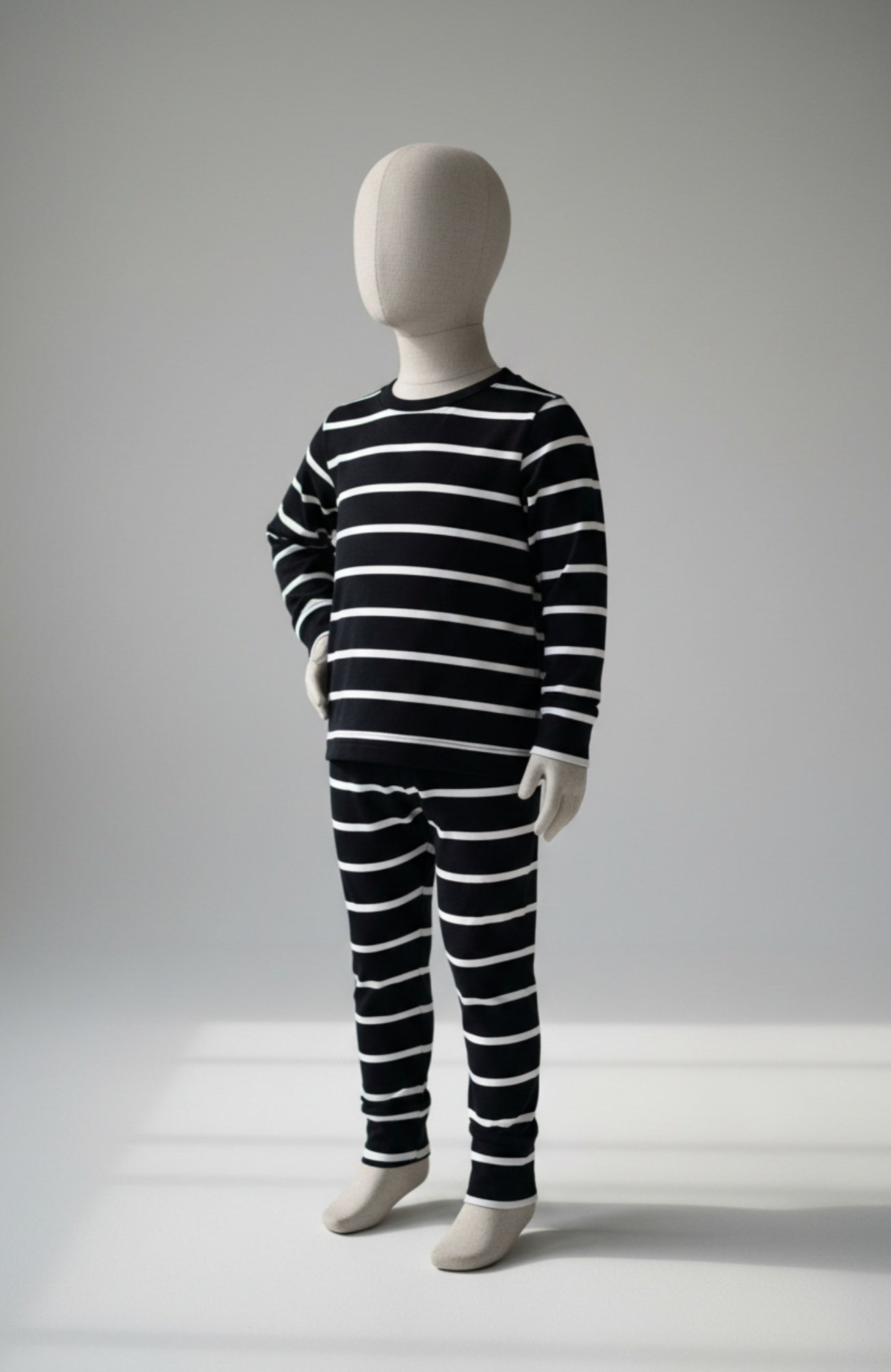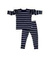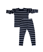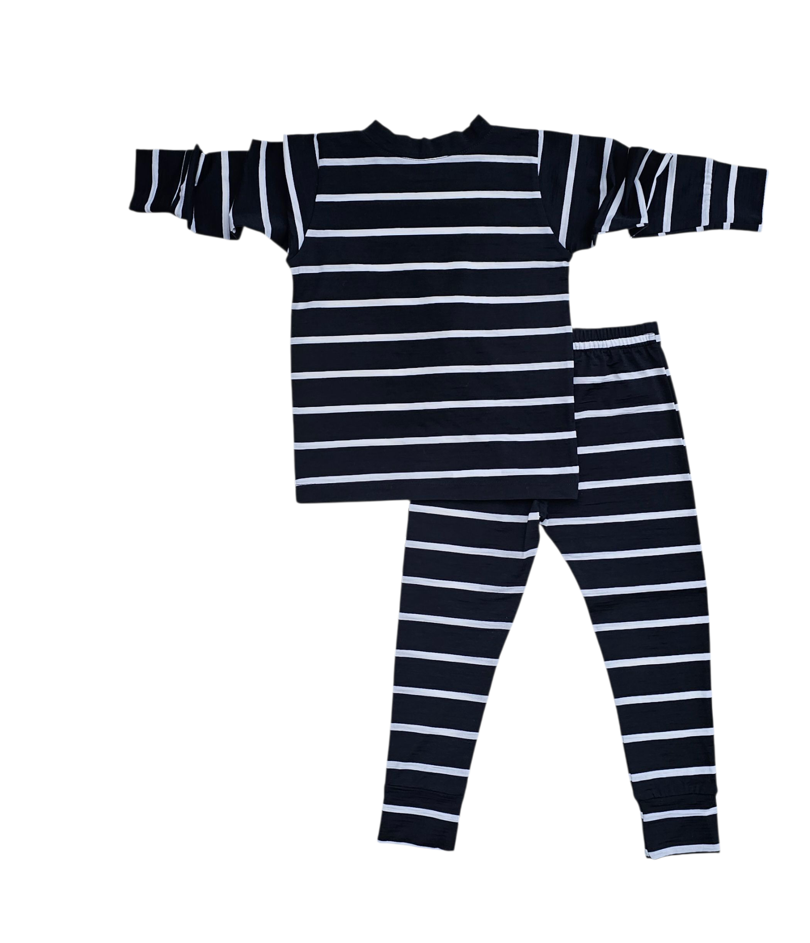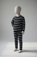 Šis merino vilnos komplektukas ( dryžuotas – mėlynos ir baltos spalvos ) – tai nepakeičiamas rūbelis permainingiems metų laikams.